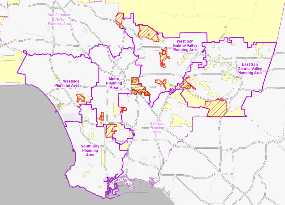 Description: Following the adoption of the East San Gabriel Valley and Metro Area Plans in May 21, 2024, the Planning Area Standards District (PASD) Zoning Overlay was established to cover regulations in all communities within a Planning Area. The PASD establishes a new regulatory framework in Title 22, and covers both area-wide development standards and zone-specific standards. Community Standards Districts (CSDs), Setback Districts, Equestrian Districts, and Significant Ridgelines are also incorporated into this PASD regulatory framework. The geography of this layer is defined by unincorporated areas within the Planning Area, as these Area Plans get updated. Data layer created on 6/14/24.